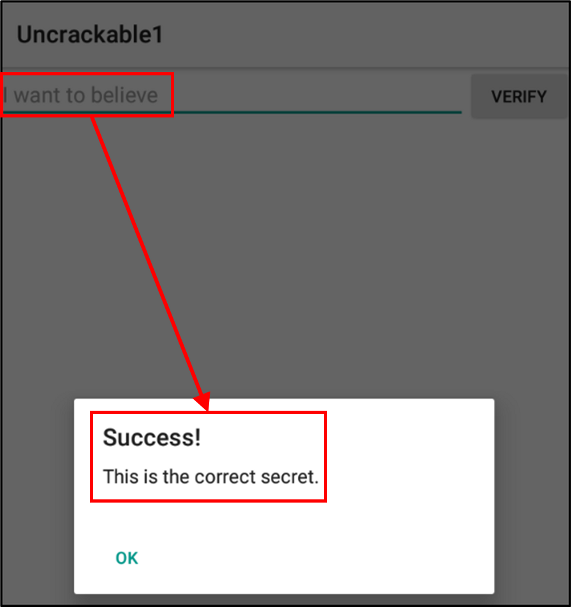 비밀키 값으로 의심되는 문자열 중 “I want to believe”가 보이며, 루팅 해제 후, 키 값 확인